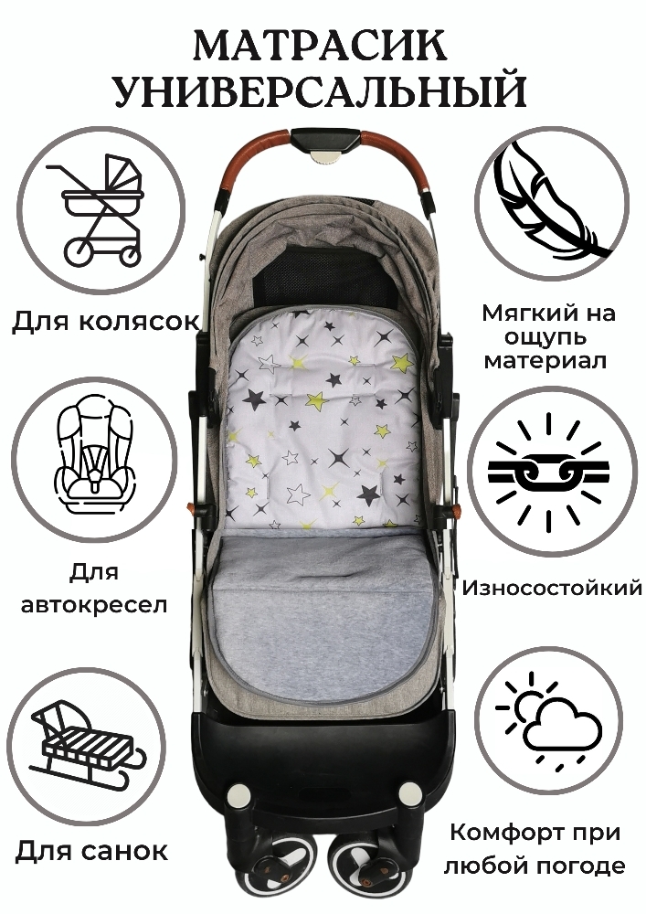 Универсальный матрас можно использовать для прогулочной коляски, для автокресла в машину, или для санок.