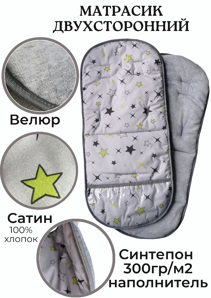 Матрасик в коляску с подножкой из ПВХ пленки серый звезды