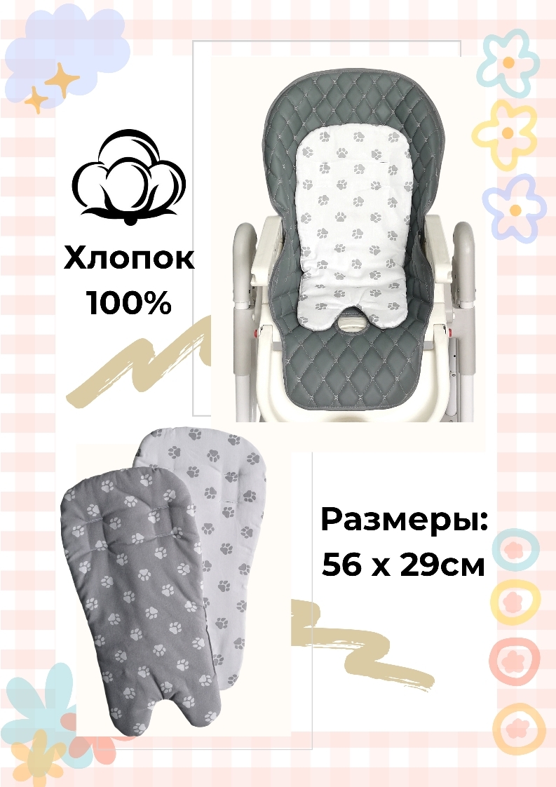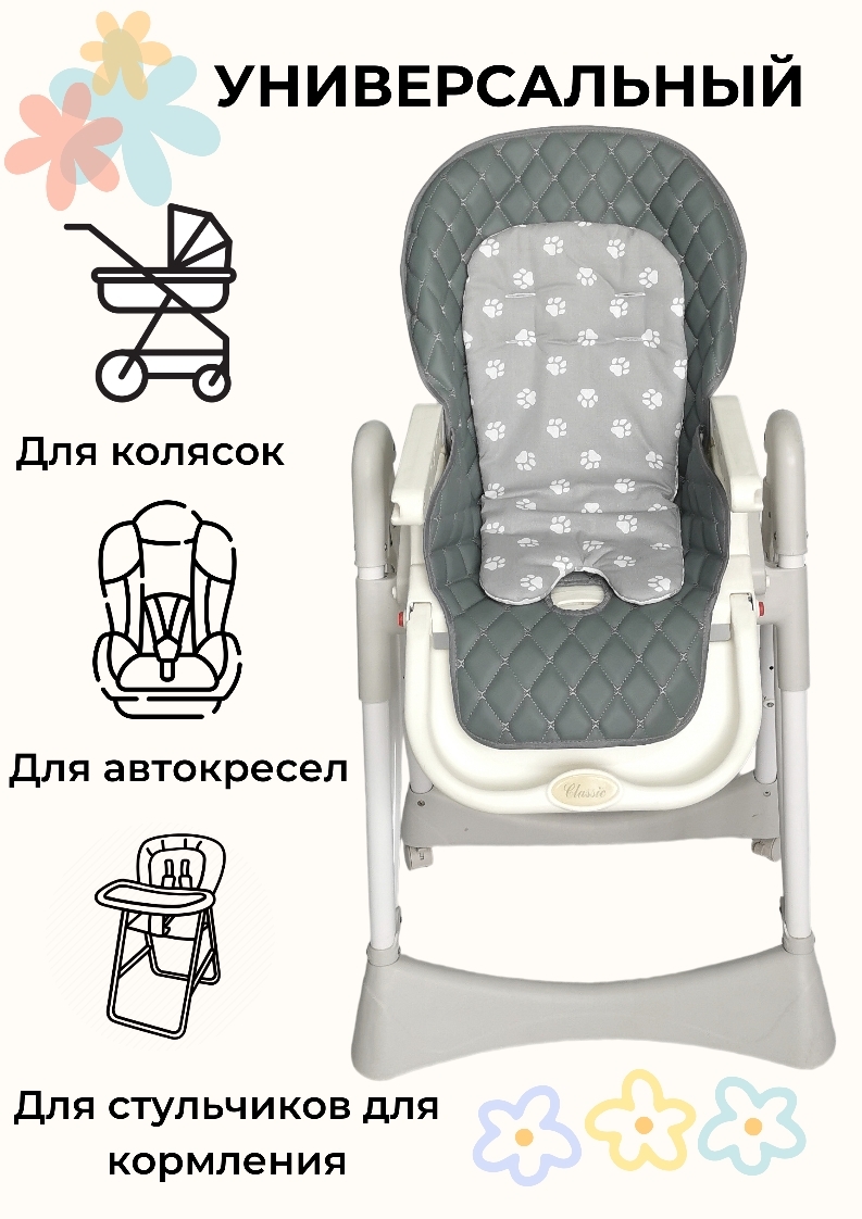 Подходит на все модели стульчиков для кормления, прогулочных колясок, автокресел, и пр.