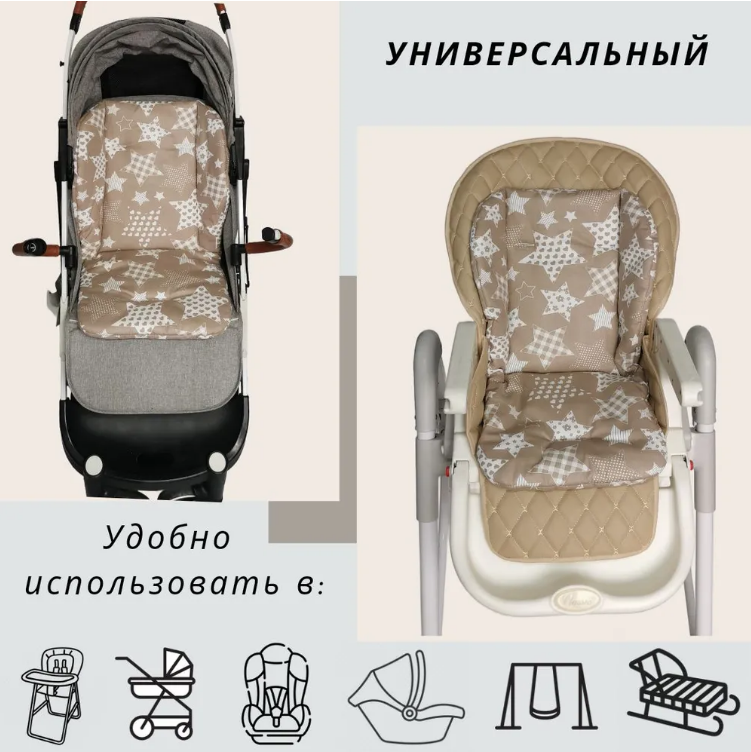Подходит на все модели стульчиков для кормления, прогулочных колясок, автокресел, и пр.